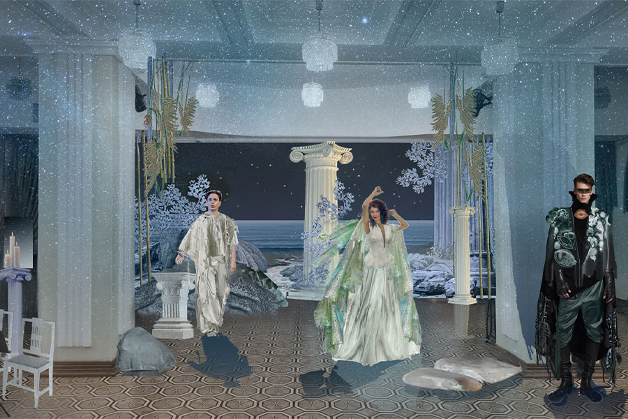 Визуальный мир спектакля, созданный главным художником театра Любовью Сидельниковой, раскрывает суть мифа через тонкую игру цвета и света. Галатея и Ацис облачены в светлые цвета – белый и голубой, в то время как Полифем предстает в глубоких темных тонах с холодным отливом. Его внутренний хаос – ревность и ярость – обретают плоть: их олицетворяют два артиста балета, чья пластика и движения станут неотъемлемой частью драматургии. Над хореографией работает Анастасия Голешева.