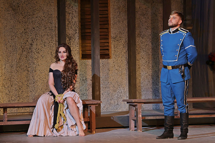 A young girl, Micaëla, approaches the dragoons who are on duty near the tobacco factory in Seville. She is seeking José. Born into a noble family and brought up in accordance with old traditions, he studied to be a priest, but one day he accidentally killed a friend of his during a game, which made him take flight and join the army. José’s mother and her foster child Micaëla followed him and settled in a village not far from the town.