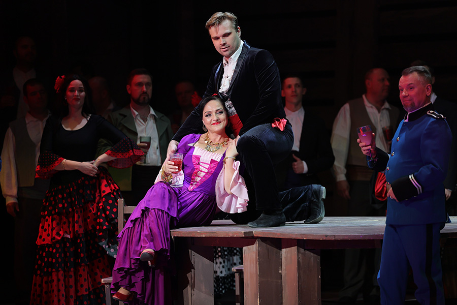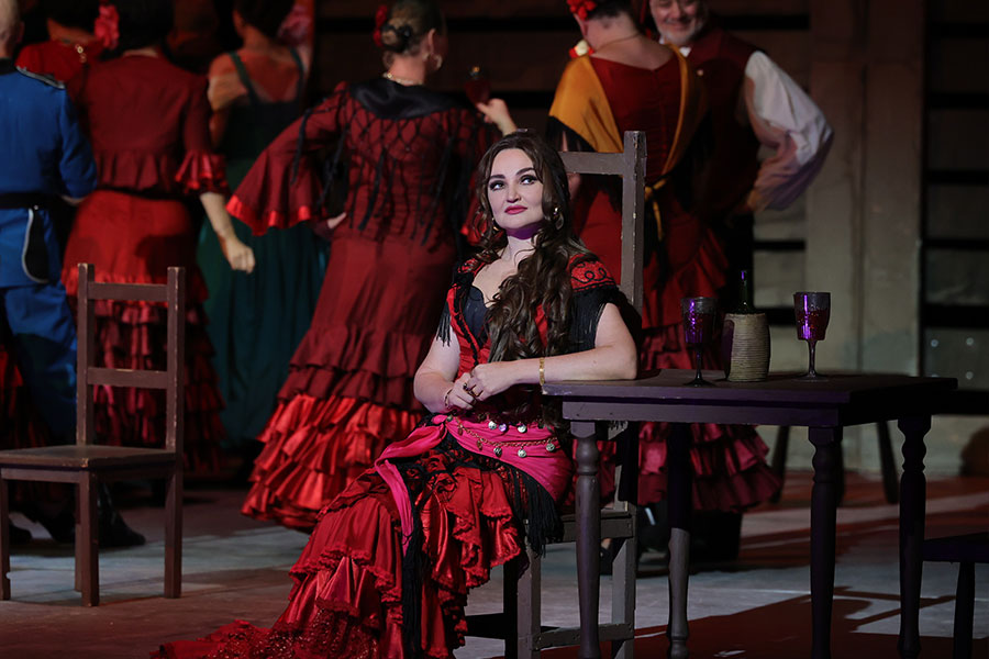 At that moment, under the cover of night, two smugglers, Remendado and Dancaïre, who sometimes have Carmen and her friends Mercédès and Frasquita as their accomplices, enter the tavern. They have a plan for which they need the girls’ help. The gang members are sure of its success, but Carmen refuses to go: she must keep her promise and wait for José to arrive. Apart from being thankful for her freedom, she thinks that for the first time in her life she has fallen in love. Dancaïre suggests enticing the dragoon into joining the gang.
